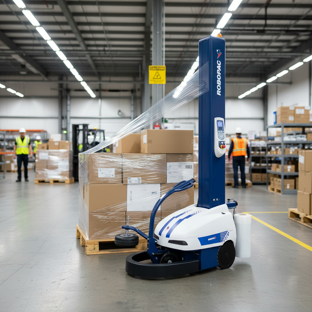 This machine's versatility enables it to wrap any size pallet or large, unstable items in situ, overcoming limitations typically found with standard turntable pallet wrap machines. Once positioned, it can wrap the pallet without operator assistance. Notably, no forklift or pallet truck is necessary to move pallets into position, allowing for operation in confined spaces and easy storage when not in use.